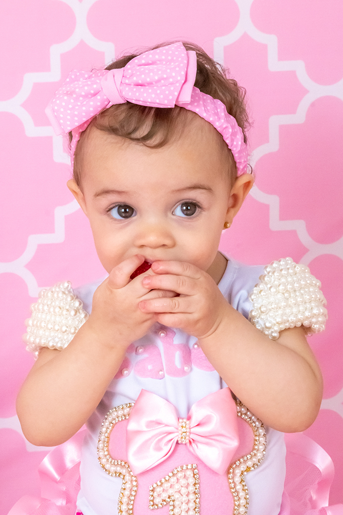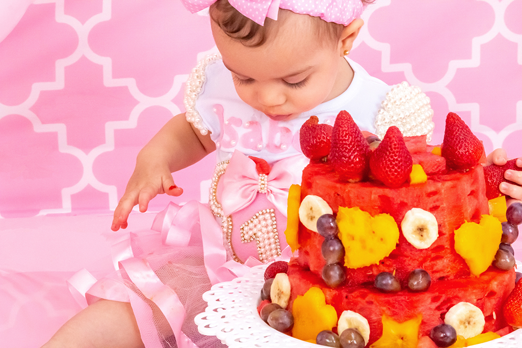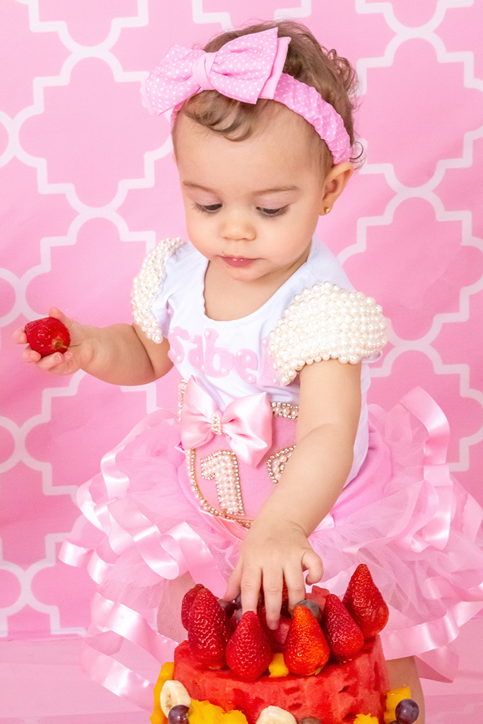 A mamãe da Isabella preparou um bolo com suas frutas prediletas para esse ensaio lindo, tendo como convidada especial a Minnie!